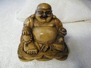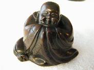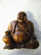 3: Lachende dikke boeddha, hout, ca. 10 cm