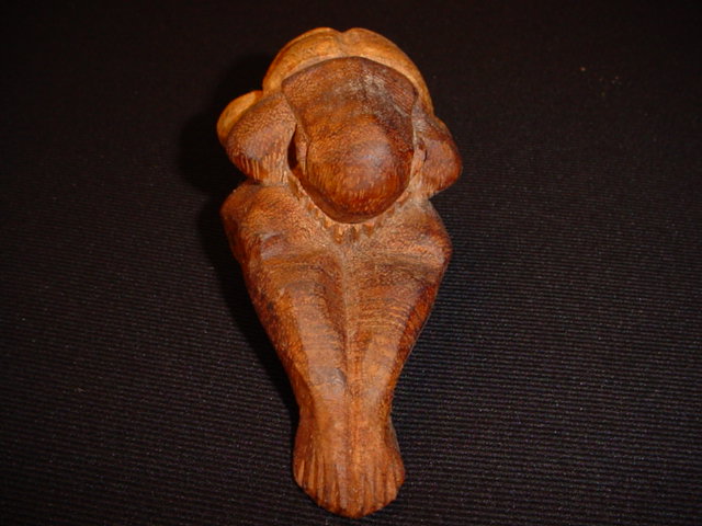 4: Lachende dikke boeddha, hout, ca 8 cm