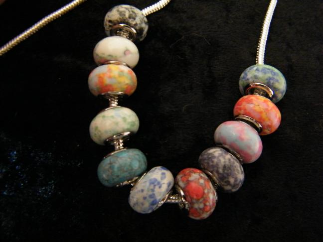 Beads in verschillende materialen, zoals o.a. de hiernaast afgebeelde half edelsteen beads.