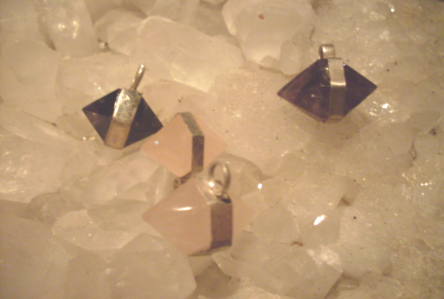 12: Speciale hangerpuntjes in zilver gezet!Amethist of Roze kwarts dubbelpuntjes