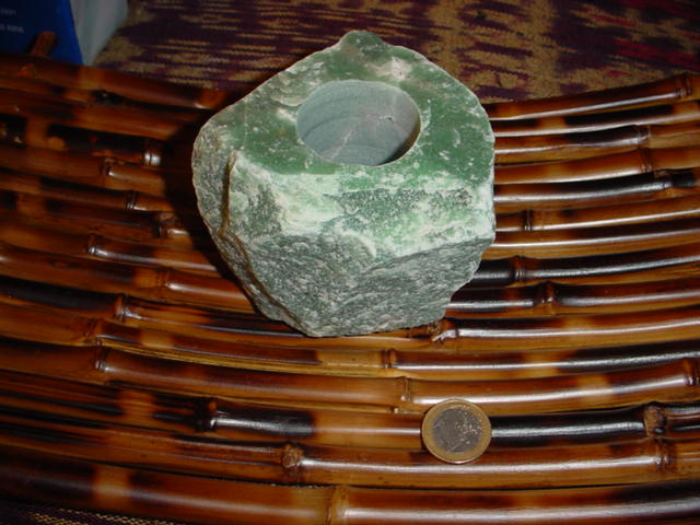 Aventurijn waxinelichtje. Mooie groene ruwe brokken aventurijn waarin een waxinelichtje past.